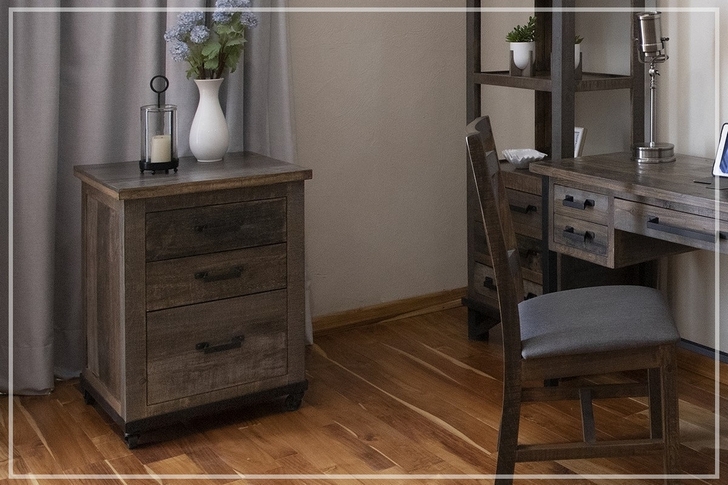 • Multi-step hand-painted water-based acrylic lacquer finish in gray and brown tones for an updated “reclaimed wood” look.